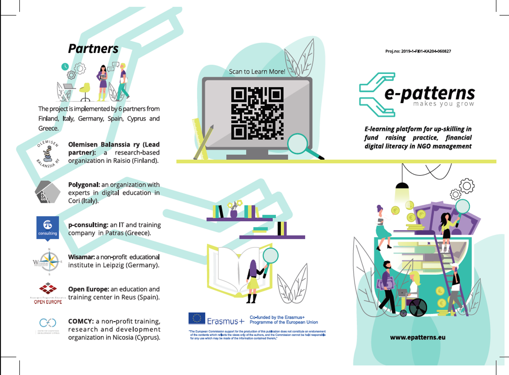 e-PATTERNS is a demanding and didactic project that enables SMNGO”s to equip with financial literacy practices and fundraising abilities. In the 21st century which IT technologies dominating our world, requires citizens, non-profit organizations, as well as business, should have a basic level of financial literacy.